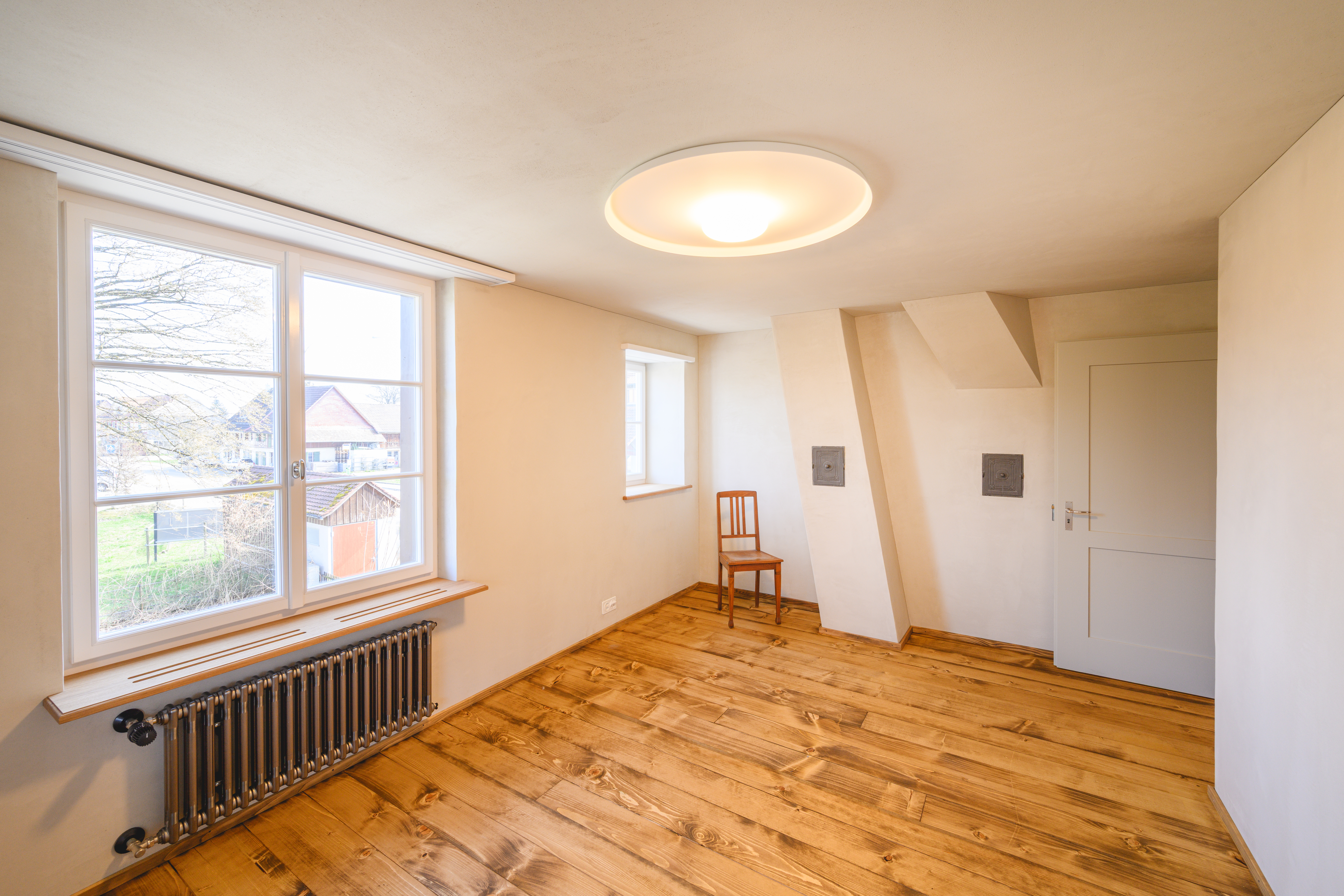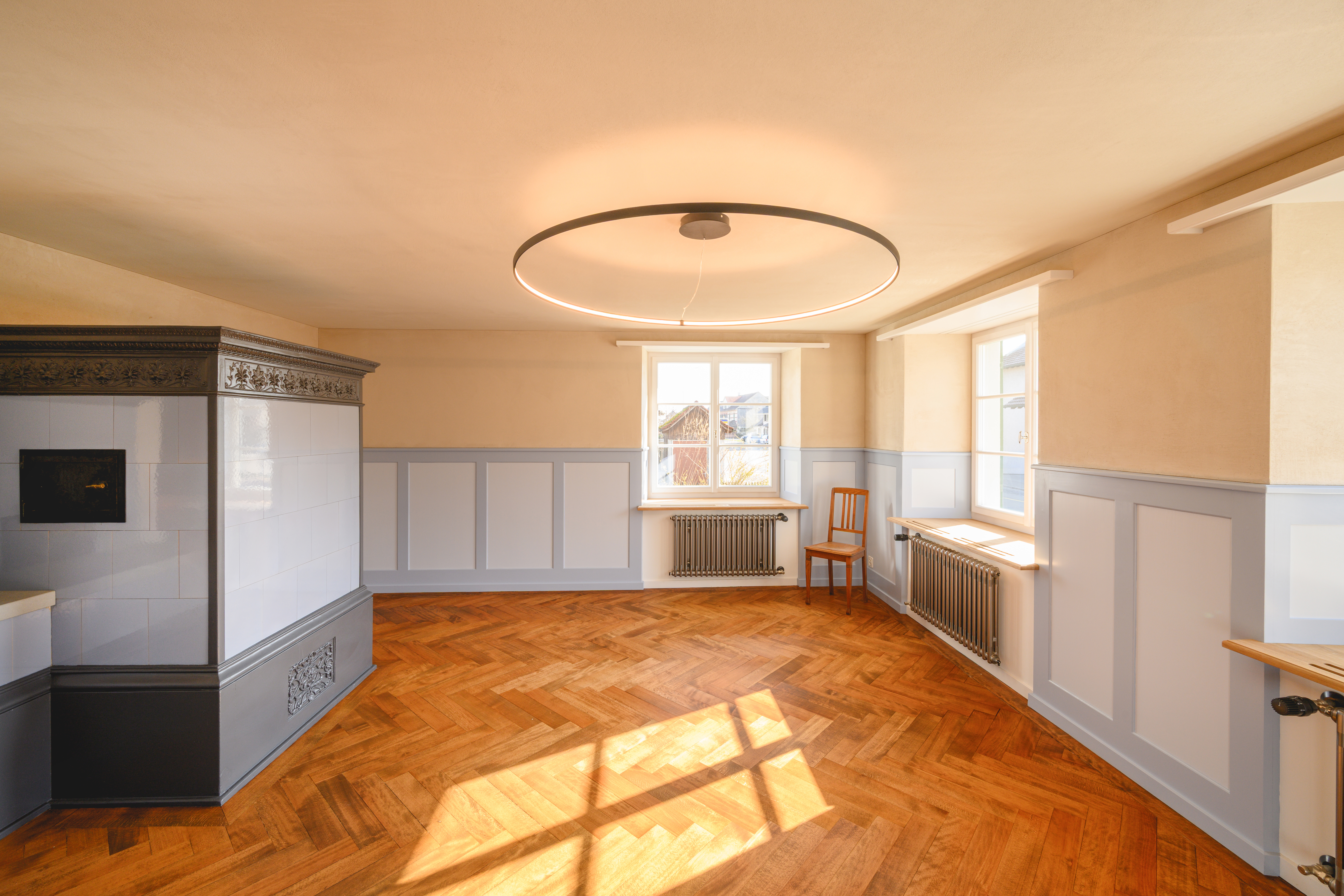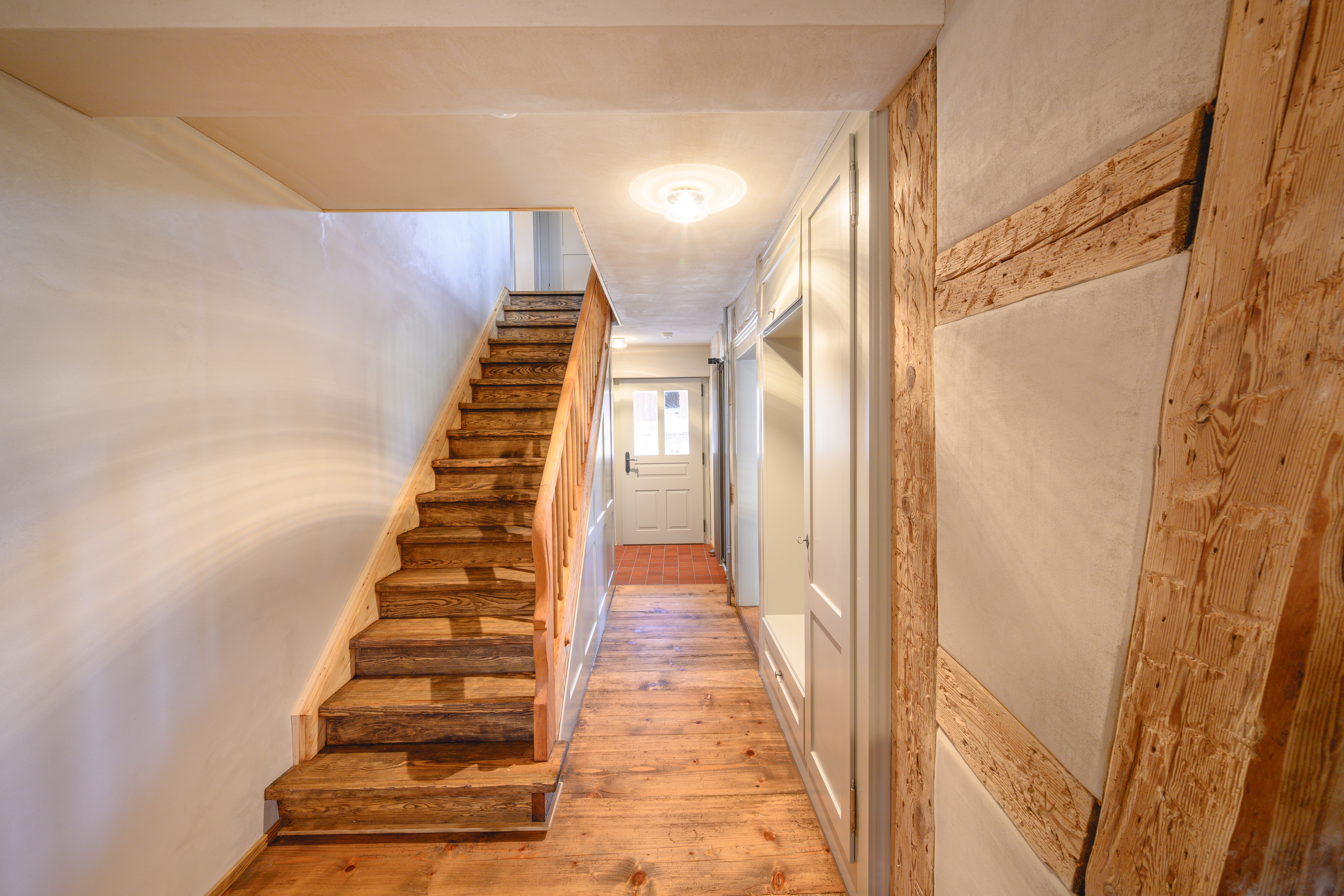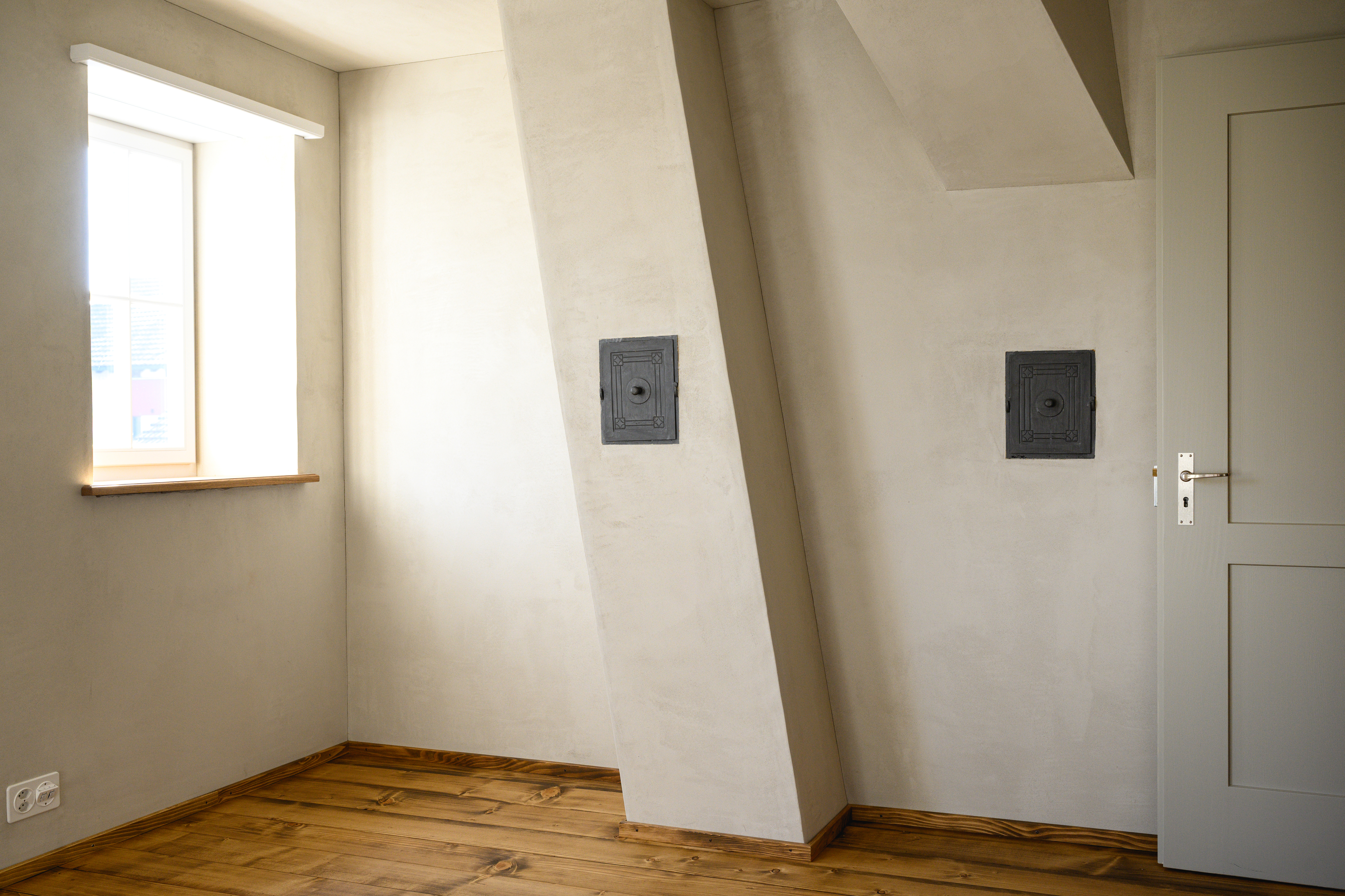 - Leistungen: Gipserarbeiten Innen und Aussen, Bemusterung der Oberfläche, Ausführung mit Lehmputz